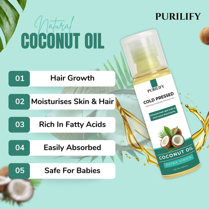 Coconut Oil (120ml) - Best for Moisturizes Skin, Best for Hair Growth, Safe for Babies
