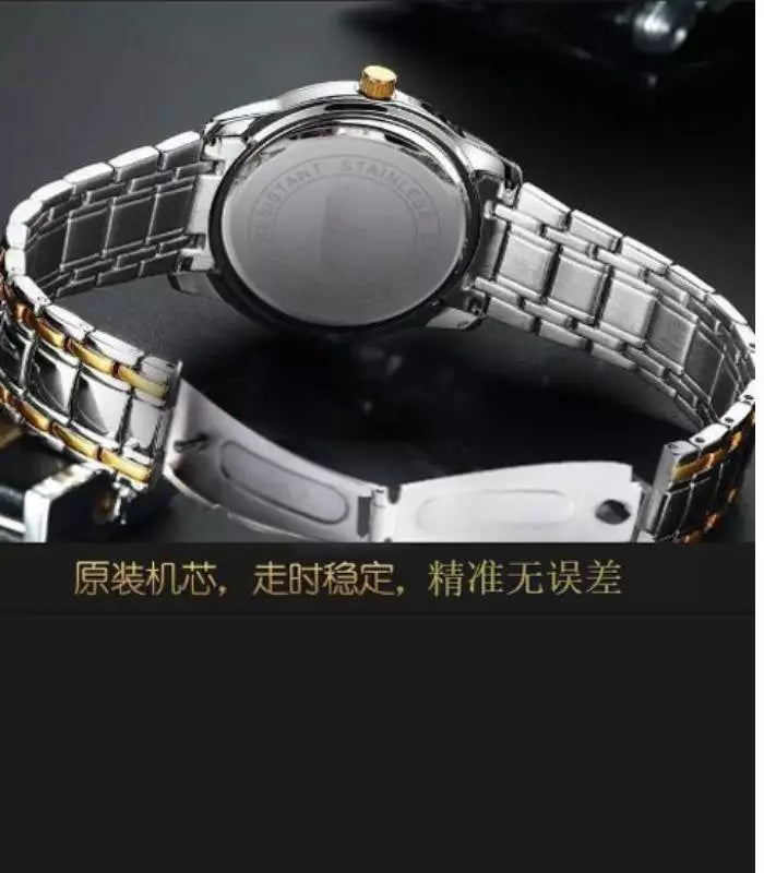 Designed for both formal and everyday wear, it includes a convenient day-date window at the 3 o’clock position and is powered by a reliable quartz movement for precise timekeeping. The polished case and matching strap offer a sleek, cohesive appearance suitable for any occasion.