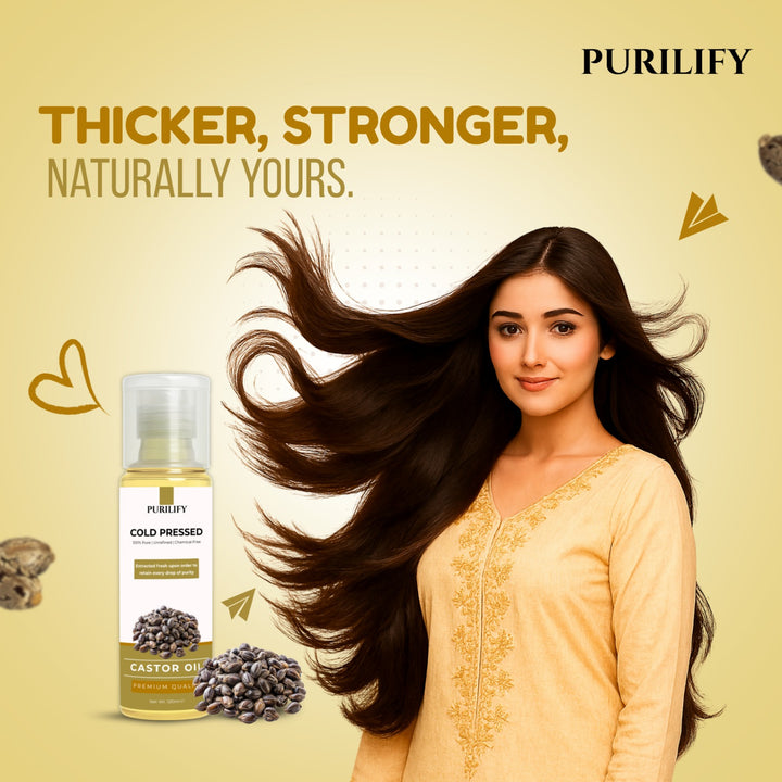 Discover the deep, therapeutic benefits of Purilify Cold Pressed Castor Oil. Extracted from the finest seeds through a chemical-free process, our 100% pure and unrefined oil is packed with Ricinoleic Acid, delivering potent nourishment and healing power from head to toe.