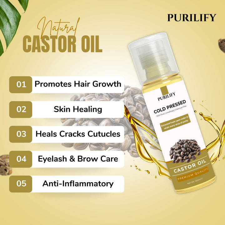 Castor Oil is legendary for its versatile medicinal and beauty uses. Here’s how Purilify’s premium quality oil can transform your routine: