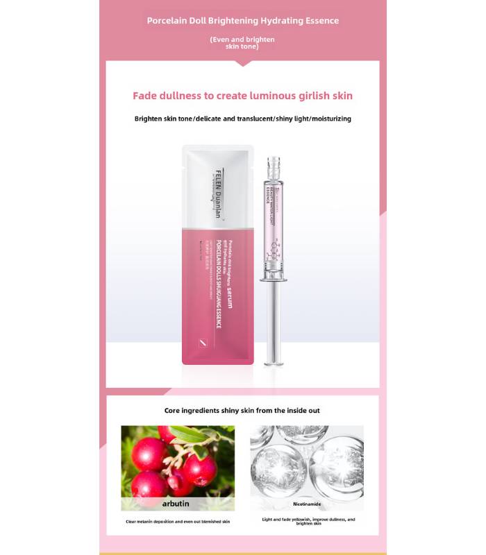 Experience luminous, porcelain-smooth skin with the Porcelain Dolls Shuiguang Essence. This 10ml serum features a light-sensitive formula that activates to deliver deep hydration and a radiant glow. Inspired by the flawless elegance of porcelain dolls, it revitalizes dull, tired skin and enhances overall brightness.